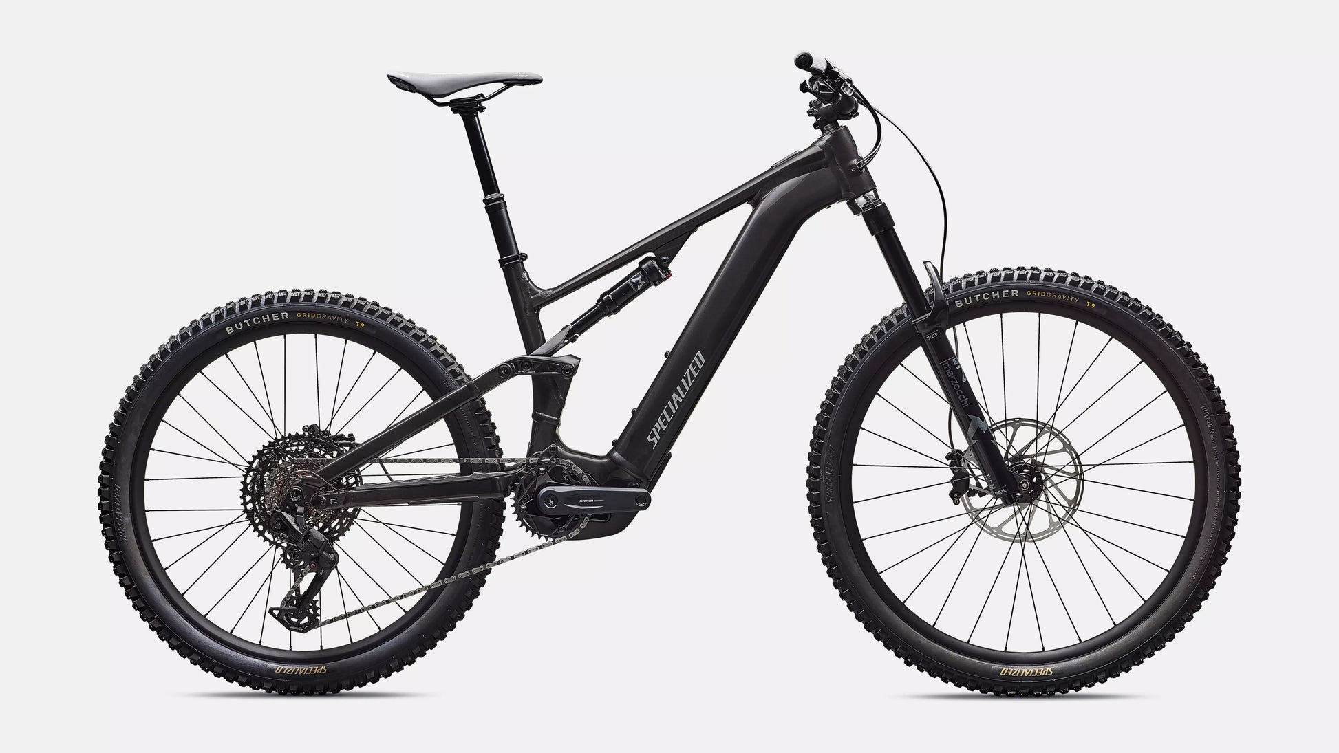 The same Turbo system as carbon models in an M5 Alloy frame with—SRAM Eagle 70, Marzocchi Bomber Z1 fork and CR shock, and DB8 Stealth Brakes.